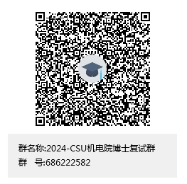 为方便通知及统一安排,请于5月1日前加QQ群:686222582 (2024-CSU机电院博士复试群)。