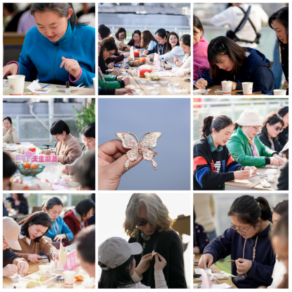 在特步俱乐部露台上,另一场关于技艺与美的对话正在上演。结合公司工程实践创新中心的特色课程,女职工们在指导老师的带领下,亲手制作螺钿DIY非遗贝壳胸针。从挑选胸针形状到镶嵌贝壳,每一步都凝聚着对传统工艺的敬畏与创新思考。活动中,大家相互欣赏、相互鼓励,传达着对美的感知和理解。经过1个多小时的努力,当一枚枚镶嵌着璀璨螺钿的胸针完美呈现时,现场响起阵阵掌声。参与者纷纷表示,这场活动不仅是一次手工艺的探索,更是一场跨越年龄与岗位的情感联结,大家在交流协作中感受到团队温暖,也在创作成果中收获了满满的成就感。