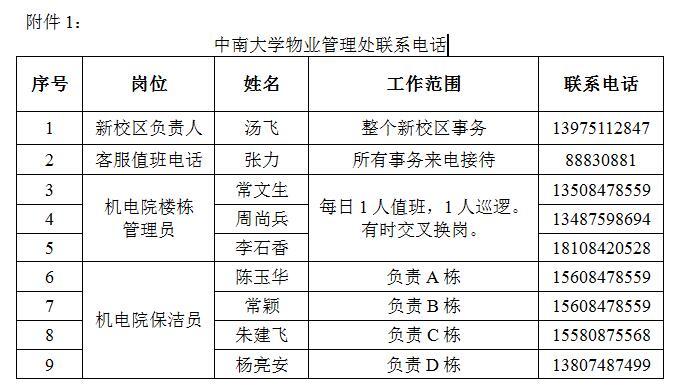 根据伟德国际VICTOR1946后勤保障部(2016)69号《关于公共楼栋物业服务外包有关事项的函》,新校区机电楼(中铝科技大楼)于2017年1月1日始已由公司后勤保障部接管,委托六建兴发物业公司管理,公司将督促物业公司管理好机电院的物业,公司师生如有任何问题或意见,请按照附件1拨打客服值班电话88830881解决问题,或拨打公司办公室电话88879351告知。