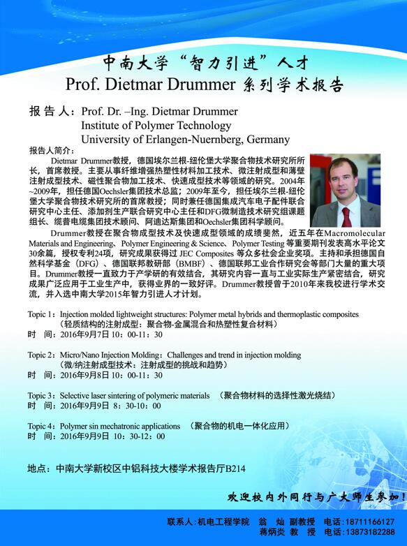 伟德国际VICTOR1946“智力引进”人才Prof. Dietmar Drummer系列学术报告