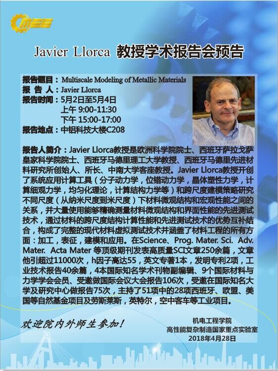 报告题目: Multiscale Modeling of Metallic Materials报 告 人 :Javier Llorca